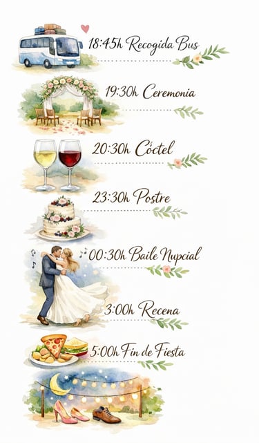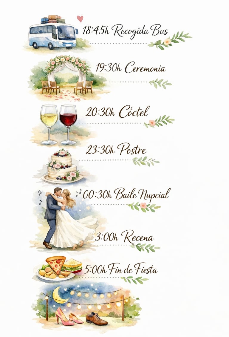 *Los horarios definitivos o cualquier cambio que surja os avisaríamos días antes de la boda.